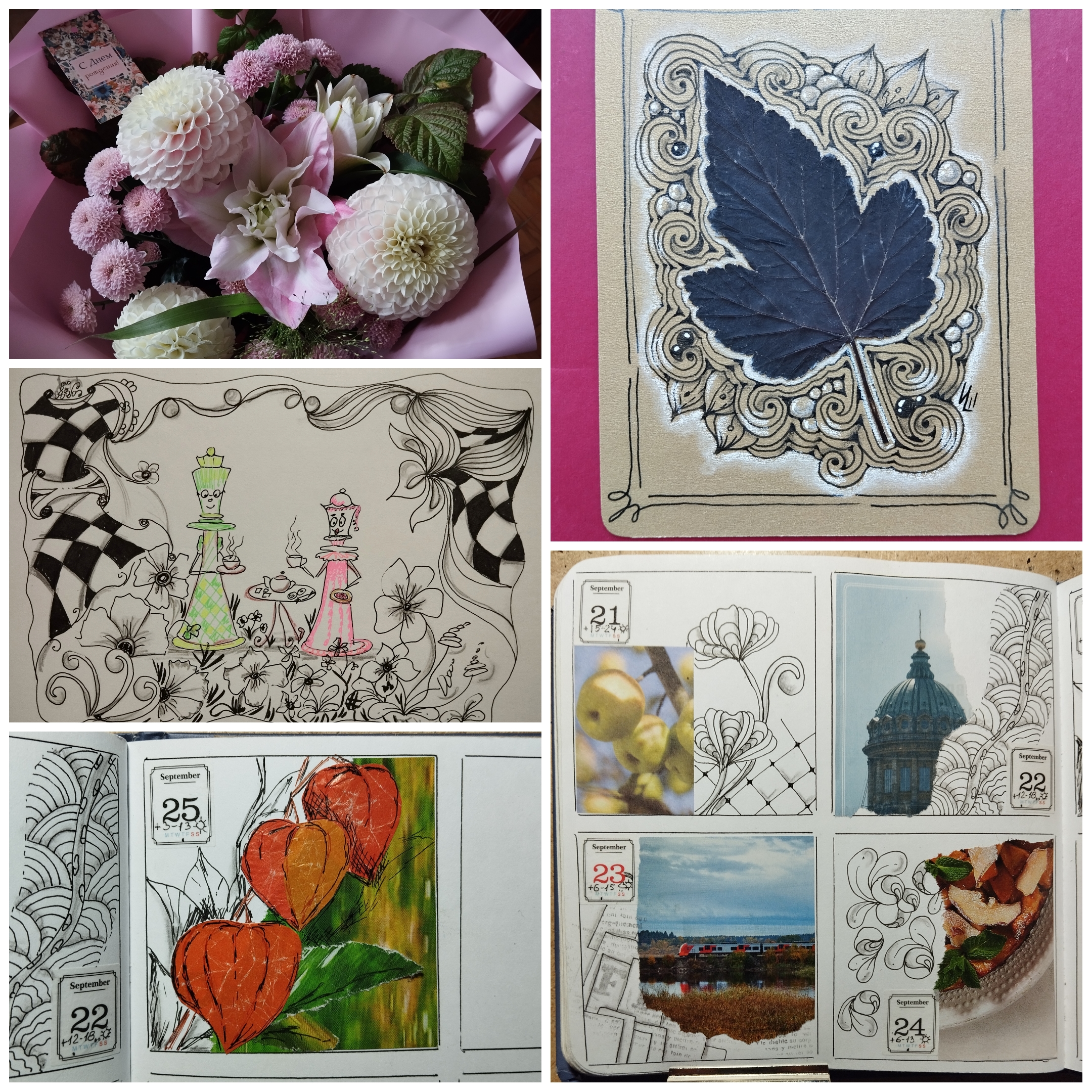 На этой неделе рисунков совсем немного. В календаре отчёт о поездке в Питер и коллаж с физалисом для игры. Пара одинаковых листиков на открытках. Король с королевой в игре "глухой телефон". Рисовала очень быстро, по описанию предыдущего рисунка. Уже над фото задумалась, что мой интеллигентный король на даму смахивает. )) Конечно, в следующем рисунке он стал фрейлиной.