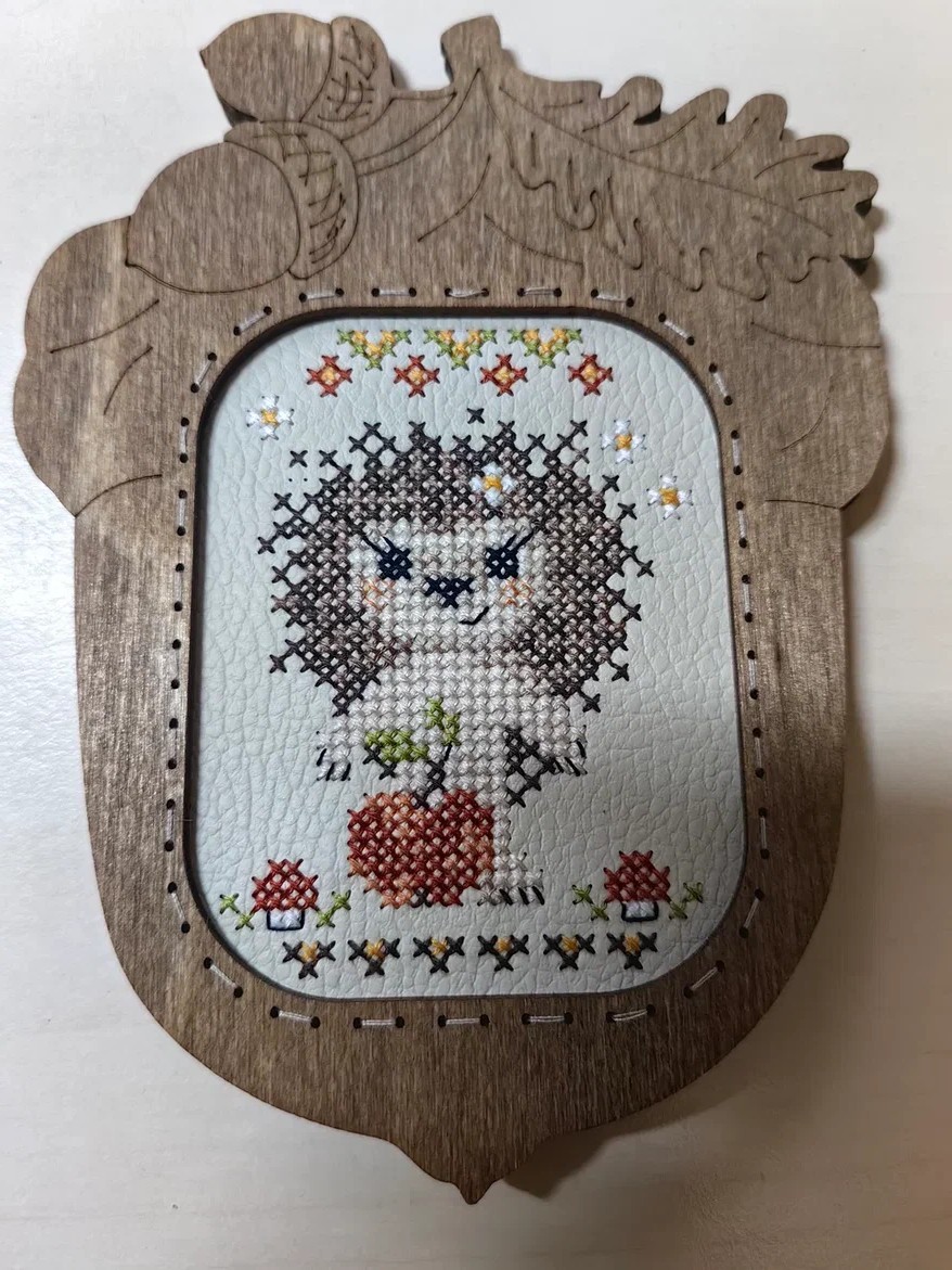 И впечатление «заедала» уже ёжиком Неокрафта. Ёжик милый, но вышивать крестики по коже в этот раз как-то не понравилось. Бисер лучше и быстрее)).