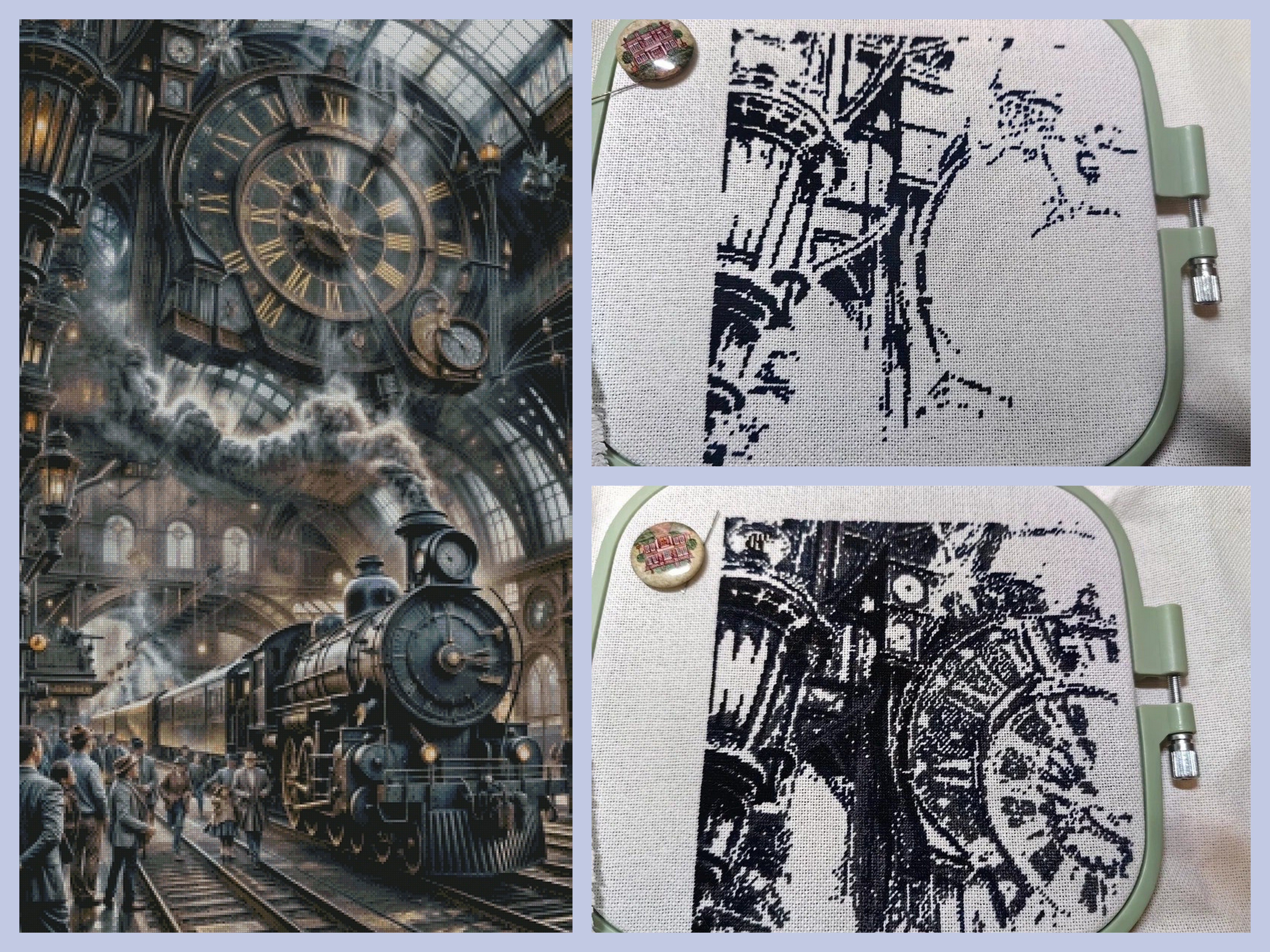 Вторая – это другой совместник другого автора, мой мрачный «Паровоз». Уже больше 10 000 отшито и там норма почти суровая – 2000 стежков в неделю.