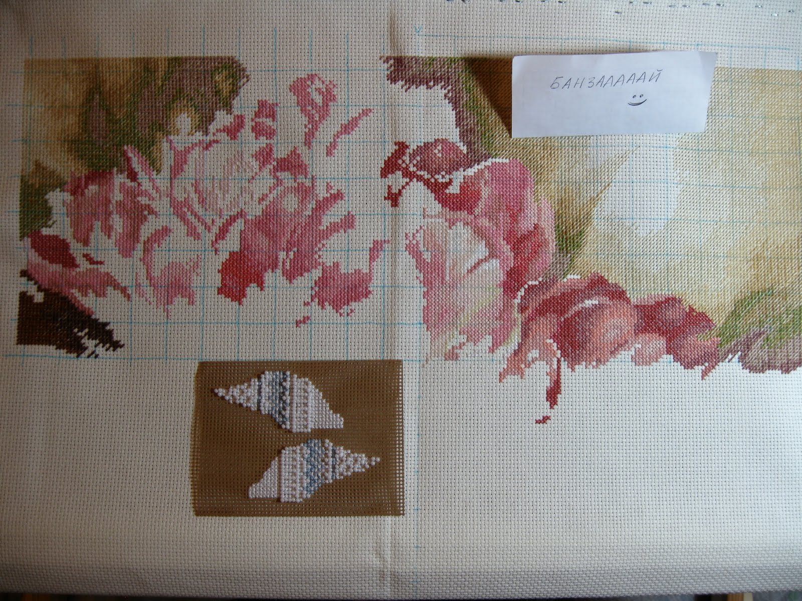 И второе — я вышивала в это время еще одну работу (вне дома). Тоже ее сфоткала с Банзаааааем. Я же могу и ее тоже выложить и суммарно считать крестики?