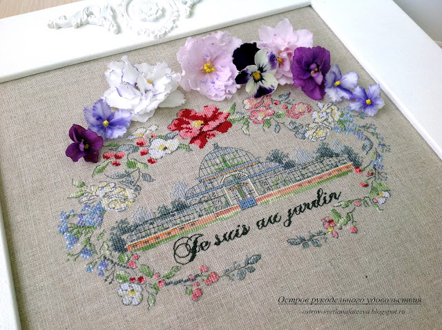 За неделю получилось вышить 1261 крестик. Орхидея обзавелась бэкстичем и приняла завершенный вид. На "воздушных шарах" появились домики и луг с изгородью.